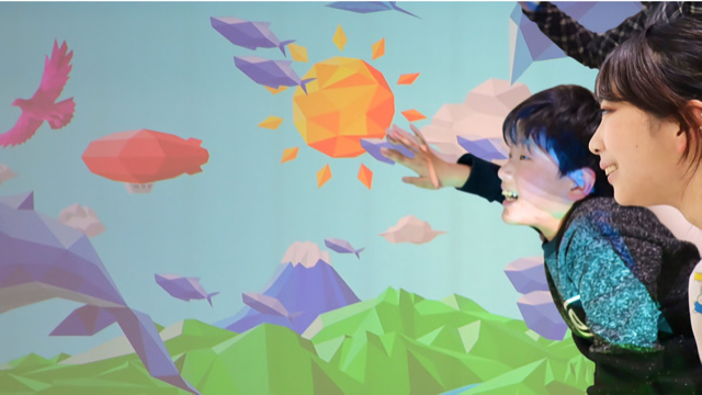 画面の中の果物をつかんだり、壁に映るクジラと遊んだり・・・