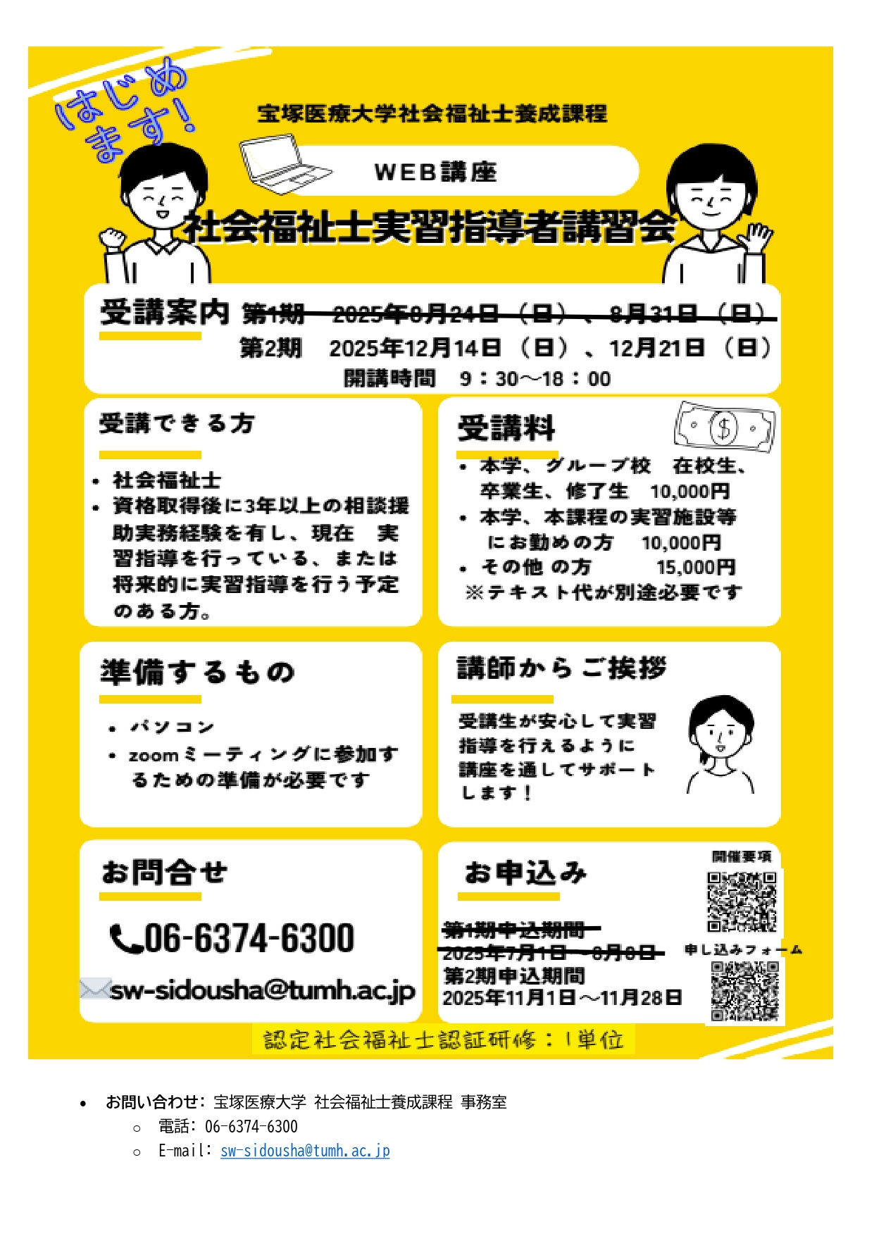 第2期社会福祉士実習指導者講習会(WEB講習)受講受付中!