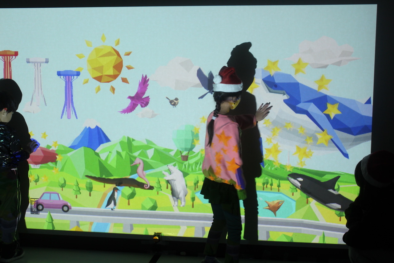 当日は近隣の小学校に通う児童が7名参加してくれました。 今回は3つのプログラムを行いました。デジリハ(デジタルアートと各種センサーを活用したリハビリテーションツール)を活用した運動プログラムと創作活動(お菓子ツリー)、調理活動(カップケーキ)を実施しました。