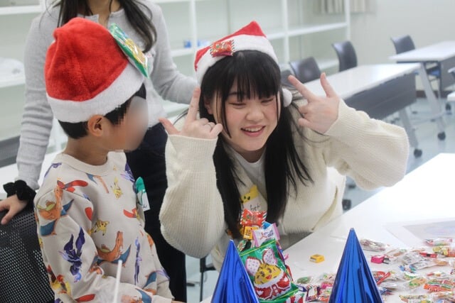 カップケーキ作りでは、ホイップクリームやチョコペン、チョコスプレーなどを使って個性豊かなカップケーキを楽しみながら作成していました。一緒に参加していた親御さんや学生に作ってプレゼントしてくれる優しいお子さんも多くおられました。