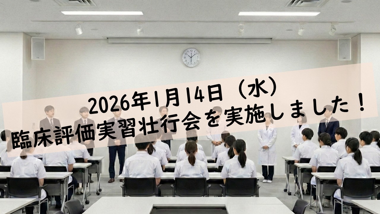 2026.01.30 保健医療学部 #学生活動 臨床実習壮行会を執り行いました 1月14日(水)、本校にて「臨床実習壮行会」を執り行いました。 1月26日より開始される臨床実習を前に、実習生一人ひとりが緊張感と期待を胸に式に臨みました。 学科長を筆頭に学科教員からたくさんの激励の言葉が贈られました。 学生たちは、これまで学んだ知識と技術を糧に、医療・福祉の現場で実践的な学びに挑戦します。 温かいご支援をよろしくお願いいたします。 ※写真はイメージです。