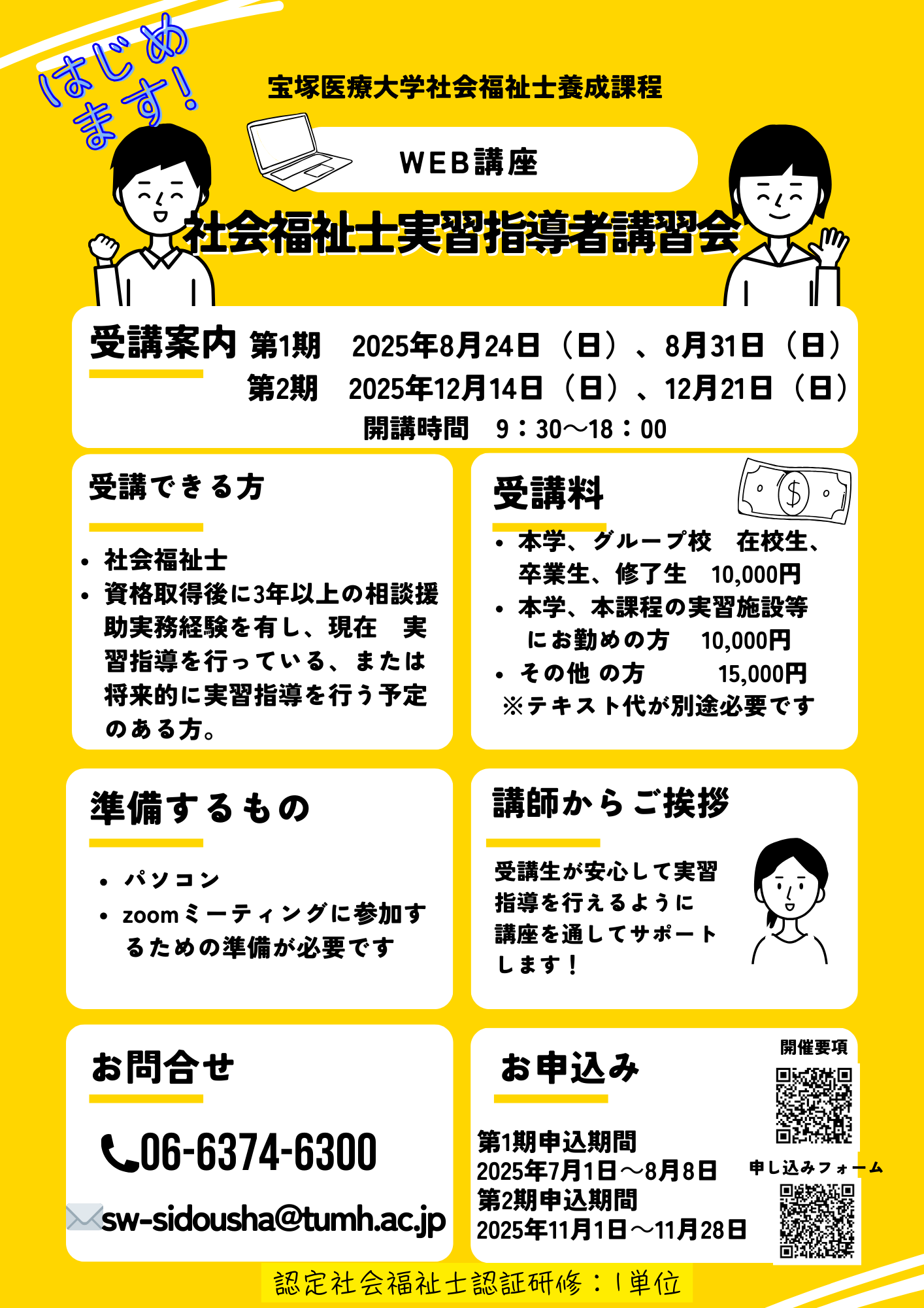 今年度から宝塚医療大学社会福祉士養成課程では社会福祉士実習指導者講習会を開催します。