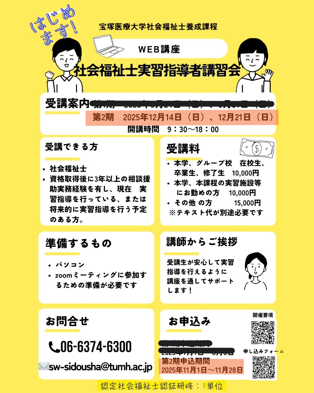 11月1日より、社会福祉士実習指導者講習会(第2期)の受付を開始します。
