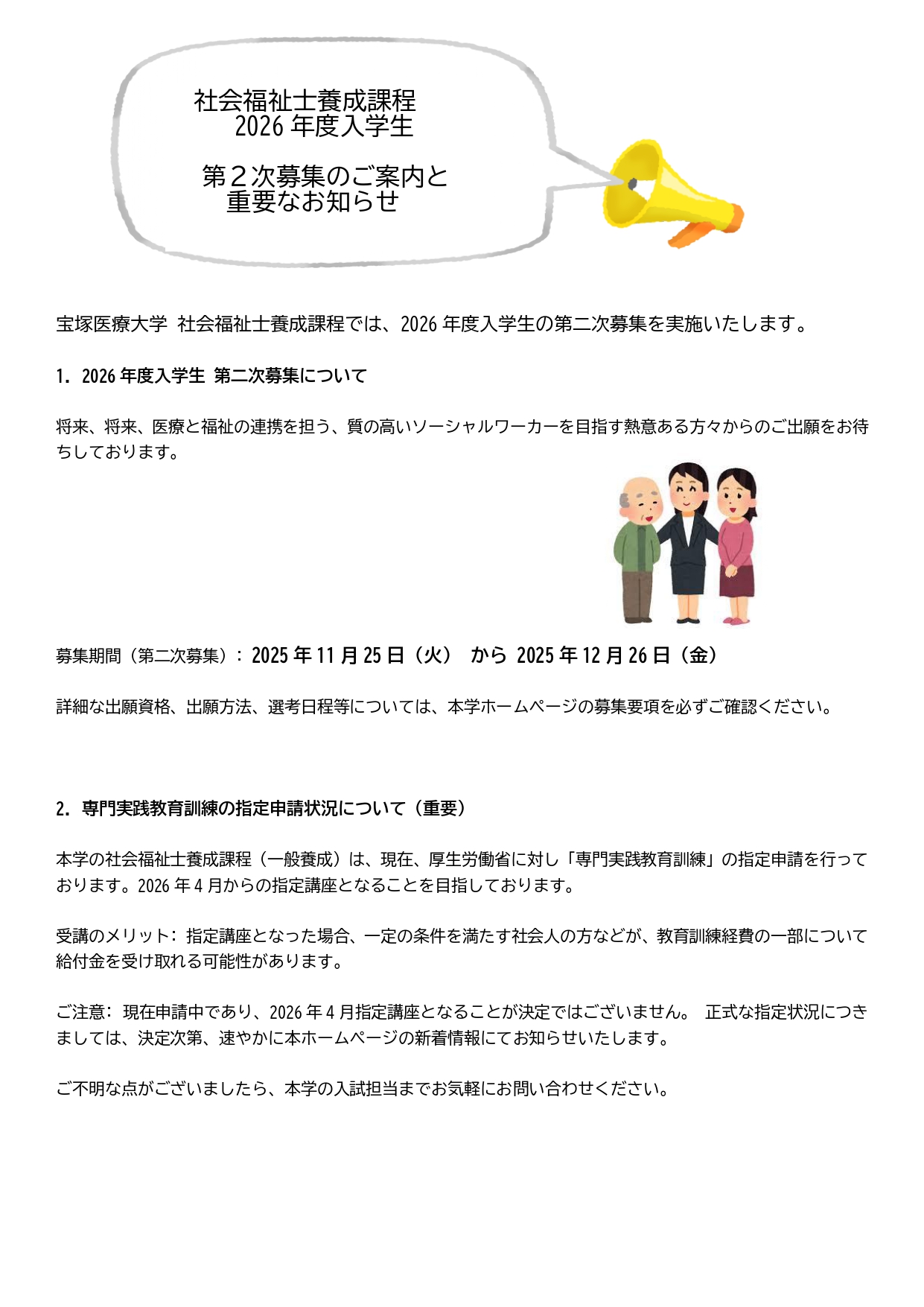 2026年度生第2次出願のご案内と重要なお知らせ
