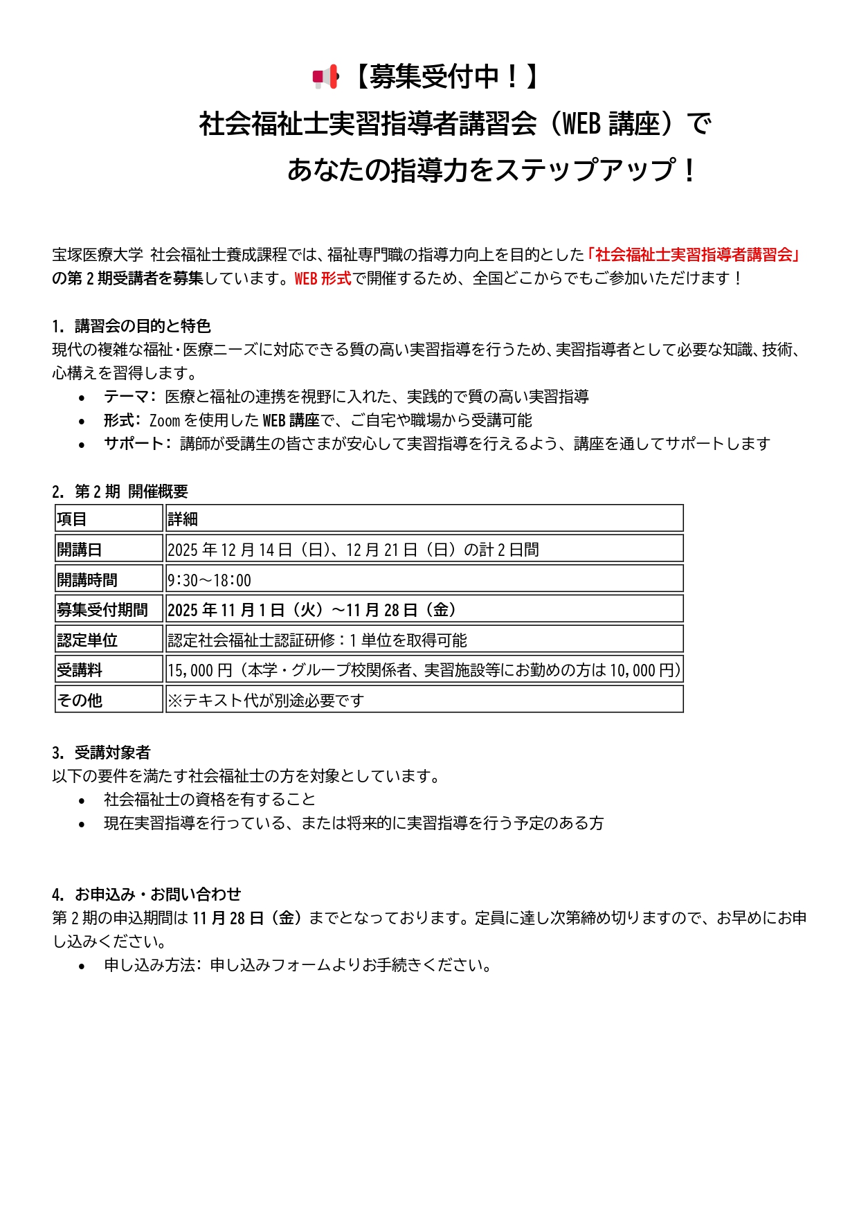 第2期社会福祉士実習指導者講習会(WEB講習)受講受付中!