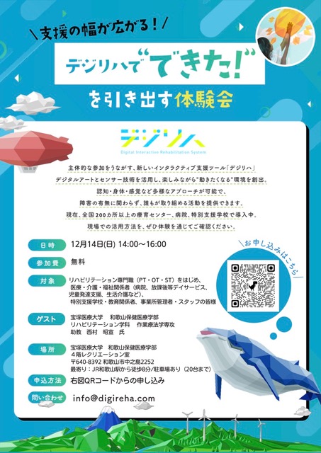 午後からは専門職種や施設担当者など支援者の皆様へ向けた「デジリハ体験会」を開催します。こちらも参加者を募集しておりますので奮ってご参加ください。