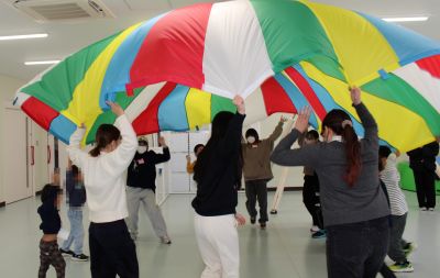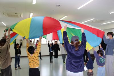 その後は全員でパラバルーンで音楽に合わせて楽しみました。