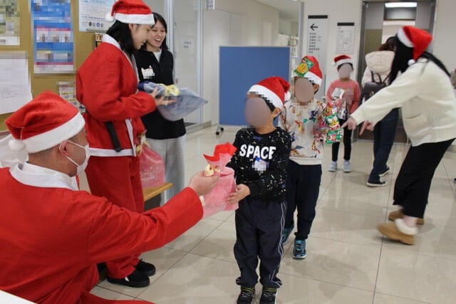 帰る時にはサンタさんからクリスマスプレゼントをお渡ししました。その場でもらったおもちゃで遊んでいる姿が見られ私たちも嬉しくなりました。